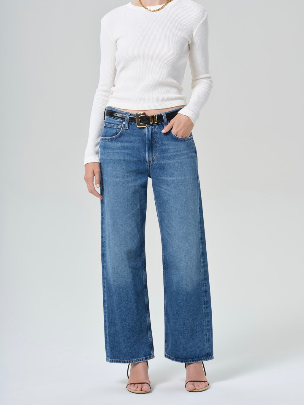The Lindz is a relaxed straight leg with a low rise and an effortless attitude. Crafted from rigid regenerative cotton with a soft hand, it offers vintage appeal with modern ease. The Chaya wash is a light-to-mid indigo with subtle fading is deal with everything from crisp shirting to worn-in tees and sneakers.