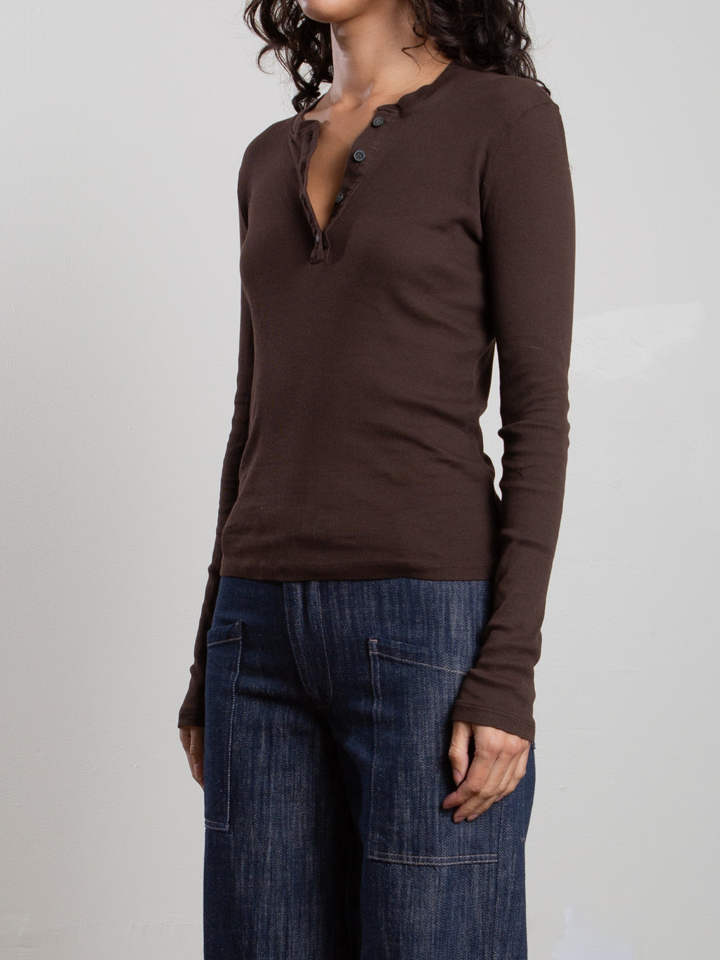 Long-sleeve t-shirt has a button front closure. These tees are like a second skin layering essential. Slim fit through sleeve and body.