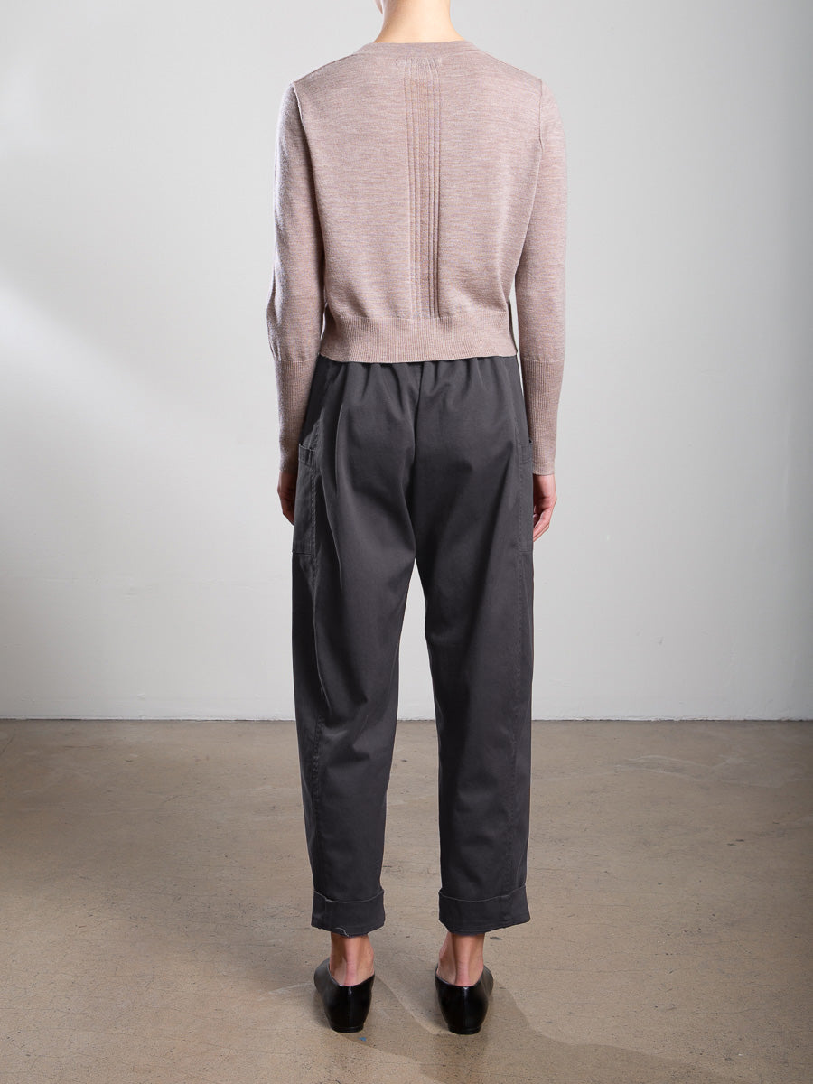 Paneled slight barrel-leg pant with elasticized back waist for ease of wear. Roll up the hem for an ankle fit or leave unrolled for added length.