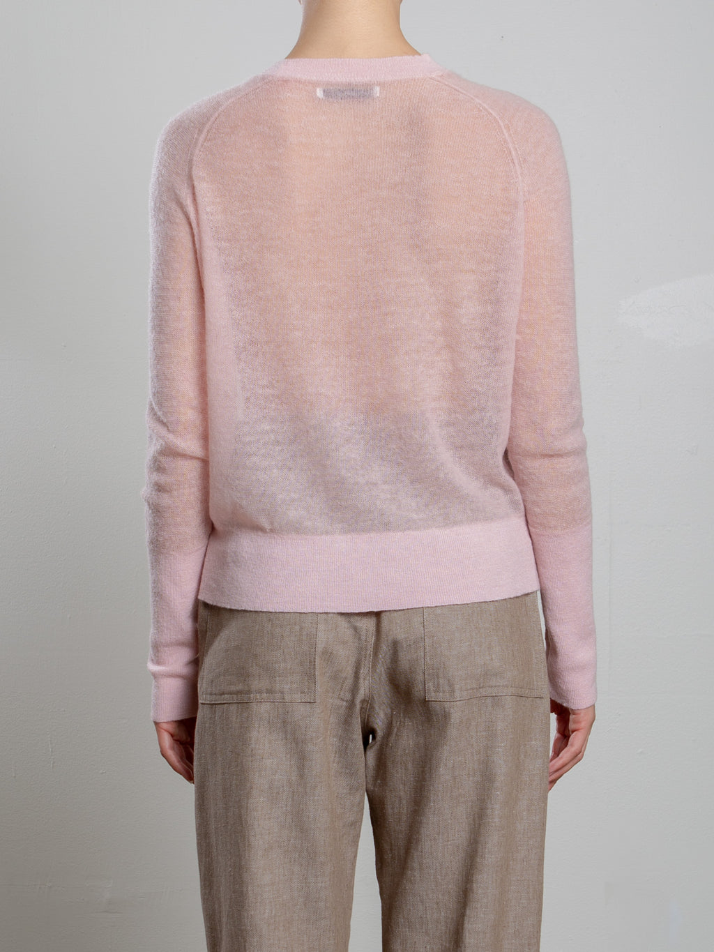 Raglan sleeve crewneck in feather-weight soft knit. Slightly sheer.