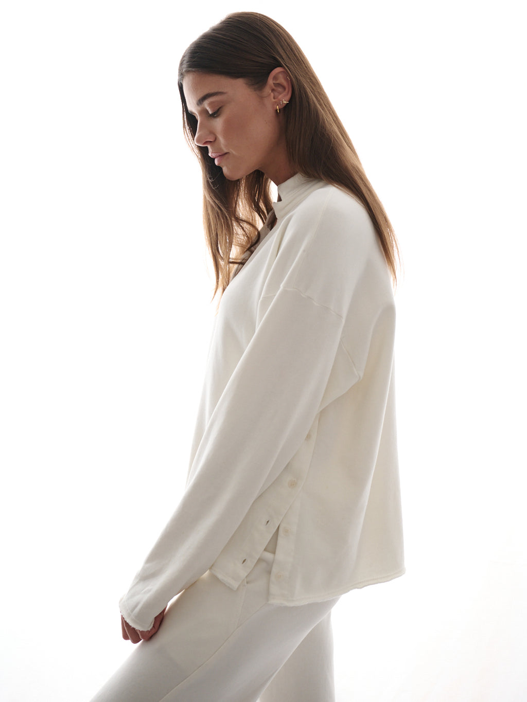 Sateen accents and side buttons elevate the classic sweatshirt. Wear it as a set with the matching Leon Sweatpant, or pare it back with denim for an off-duty look.