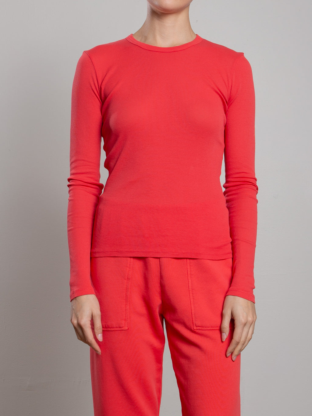 Jimmy Long-Sleeve Tee in Lightweight Rib - Poppy