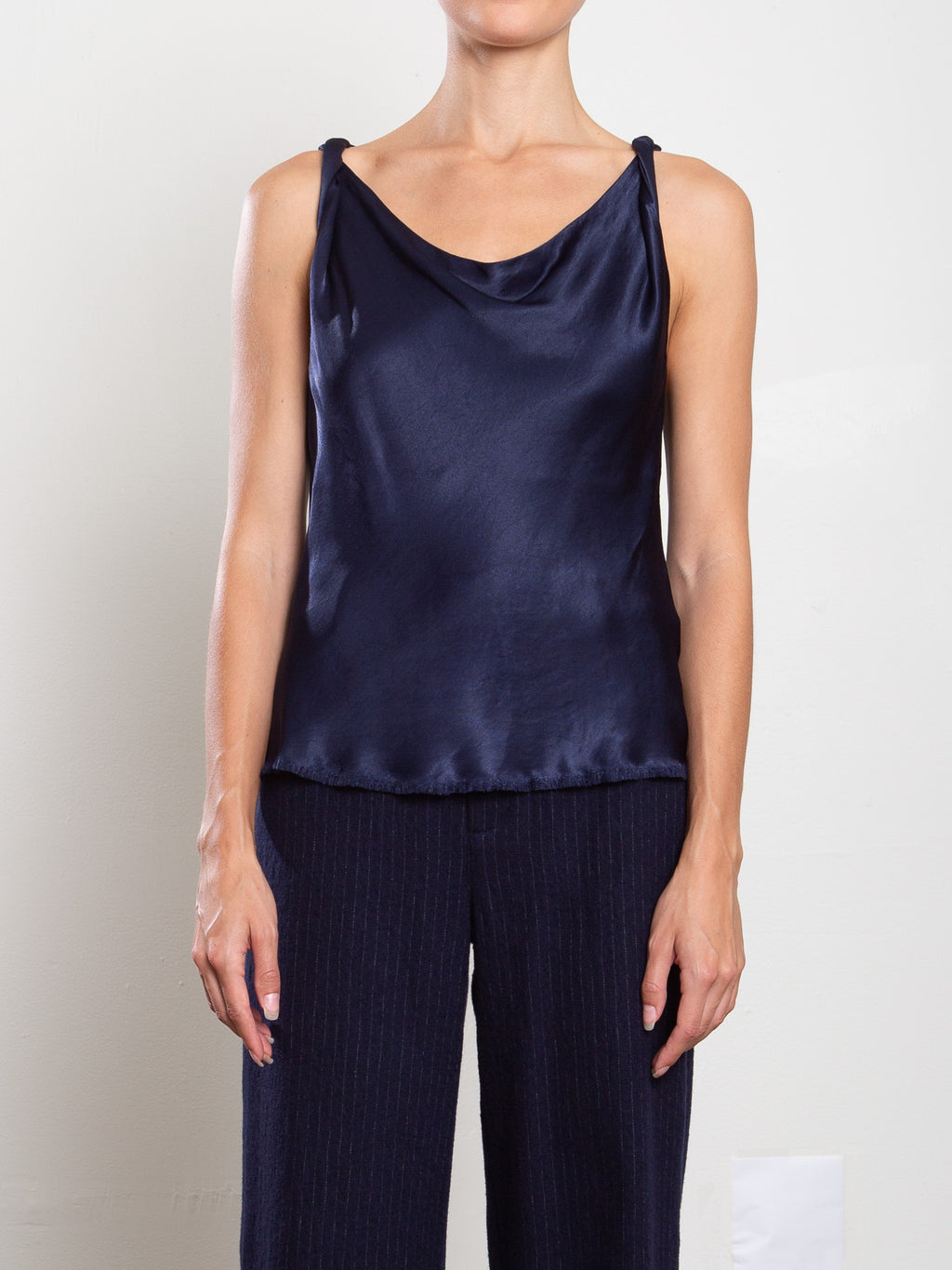 Softly draped with a twisted shoulder and gentle cowl, the Paloma is cut on the bias for an effortless fit. She's the ideal date night top—elevated yet easy, whether paired with denim or worn as a matching set.