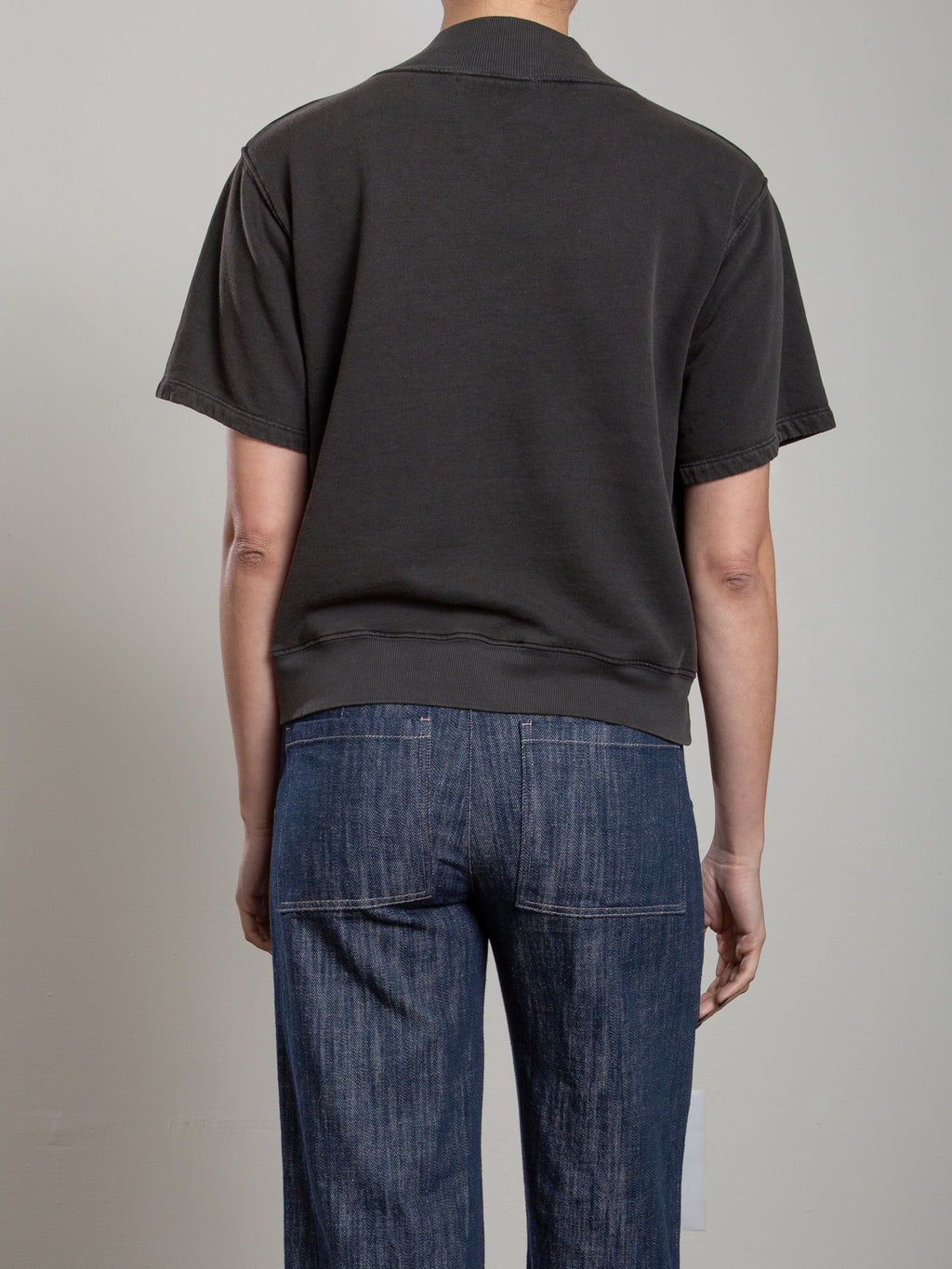 V-neck short sleeve sweatshirt with kangaroo pocket and rib accents. Made in Los Angeles.