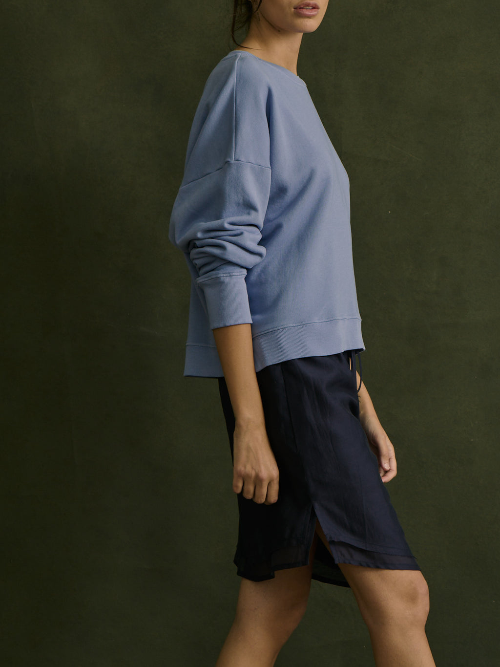 Clean lines, subtle details—the Irene Crewneck goes with everything. Finished with rib accents and side slits for ease of wear.