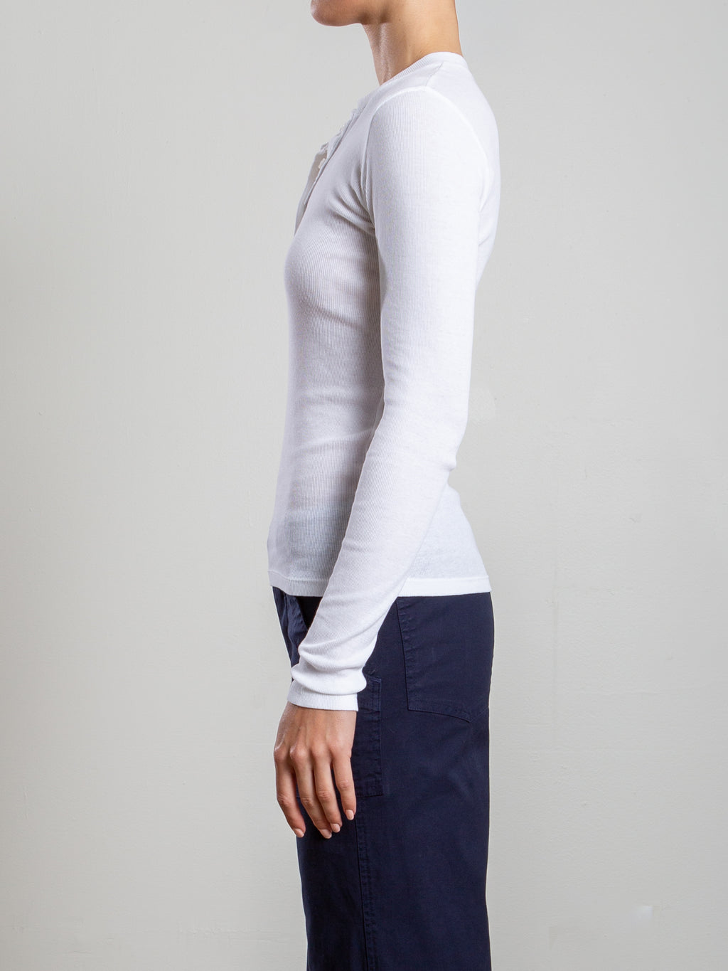 Long-sleeve t-shirt has a button front closure. These tees are like a second skin layering essential. Slim fit through sleeve and body.
